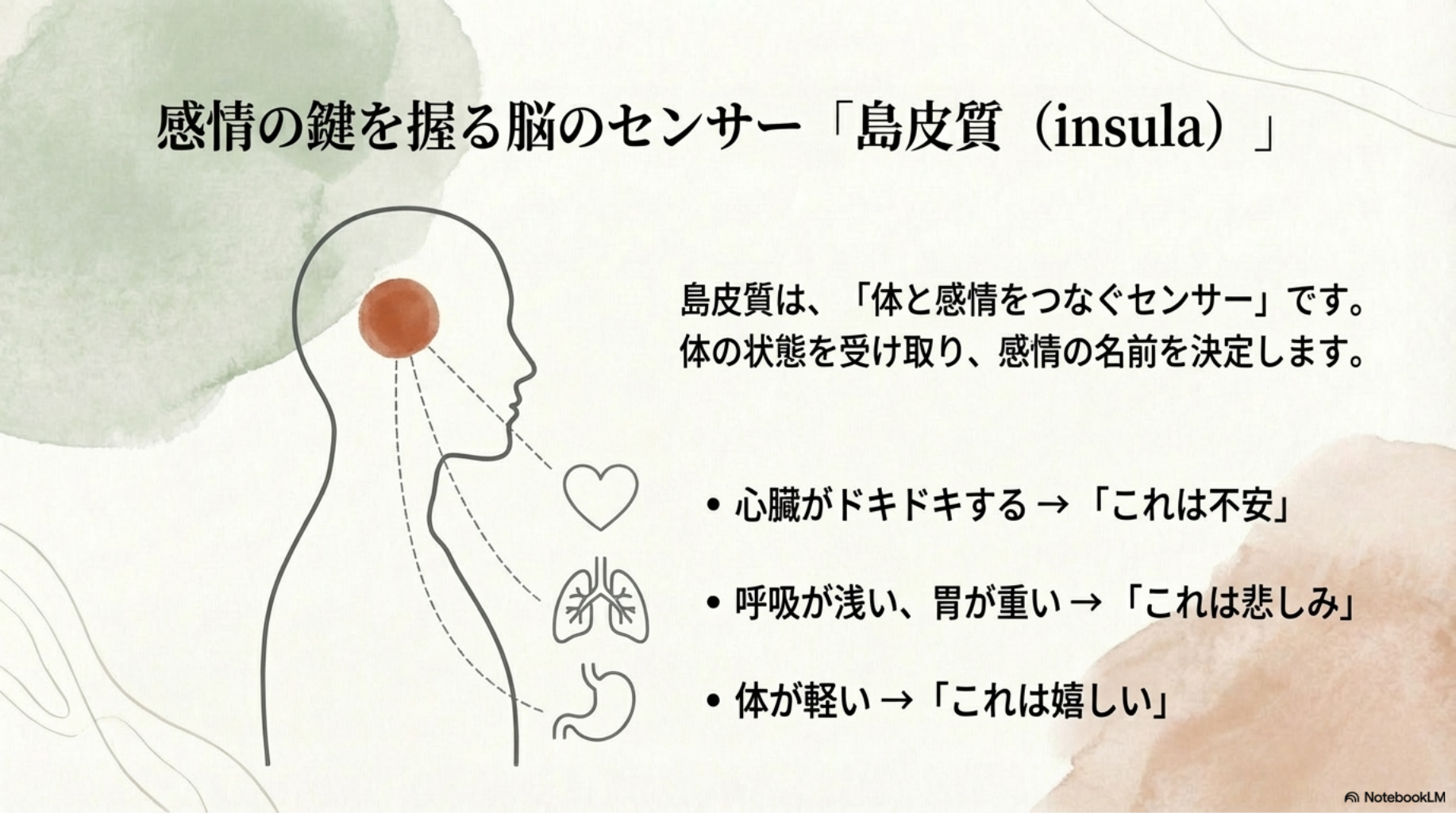 ・感情は思考ではなく体から生まれる。