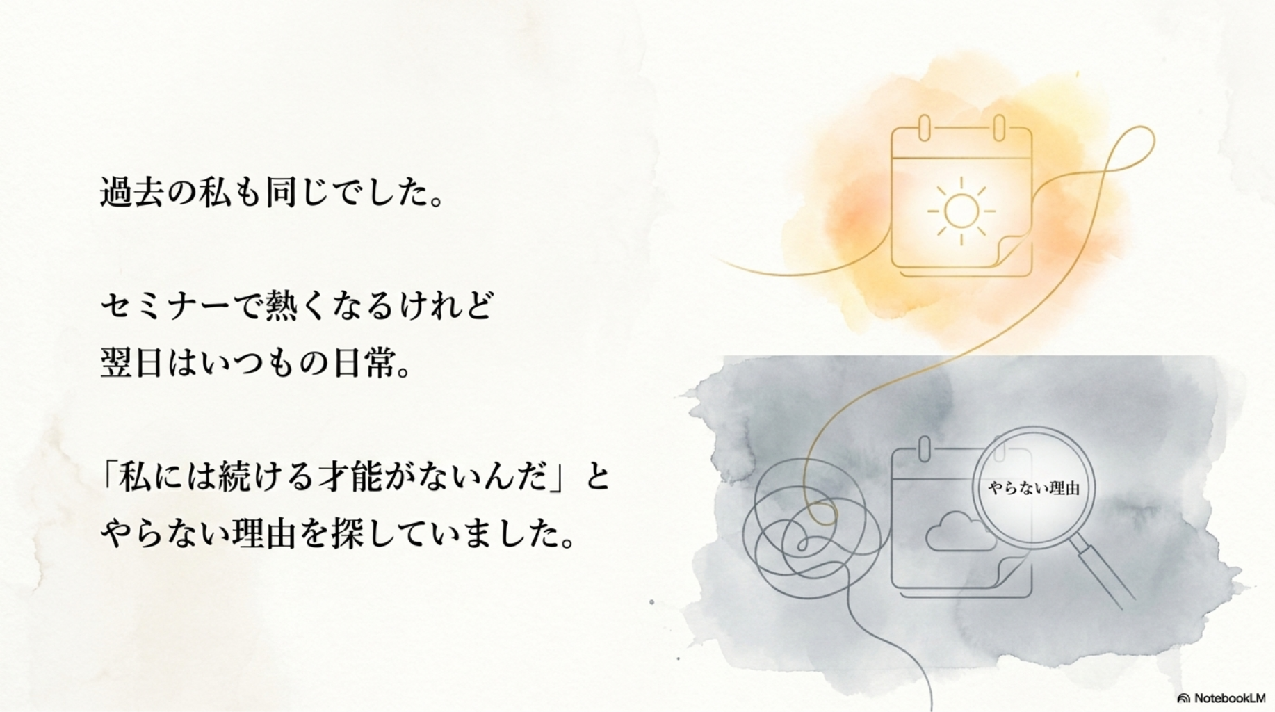 脳は「できそう」と感じただけで満足する仕組みがあり、行動前に止まってしまうことがあります。 - なぜ理解しているのに行動できないのですか?