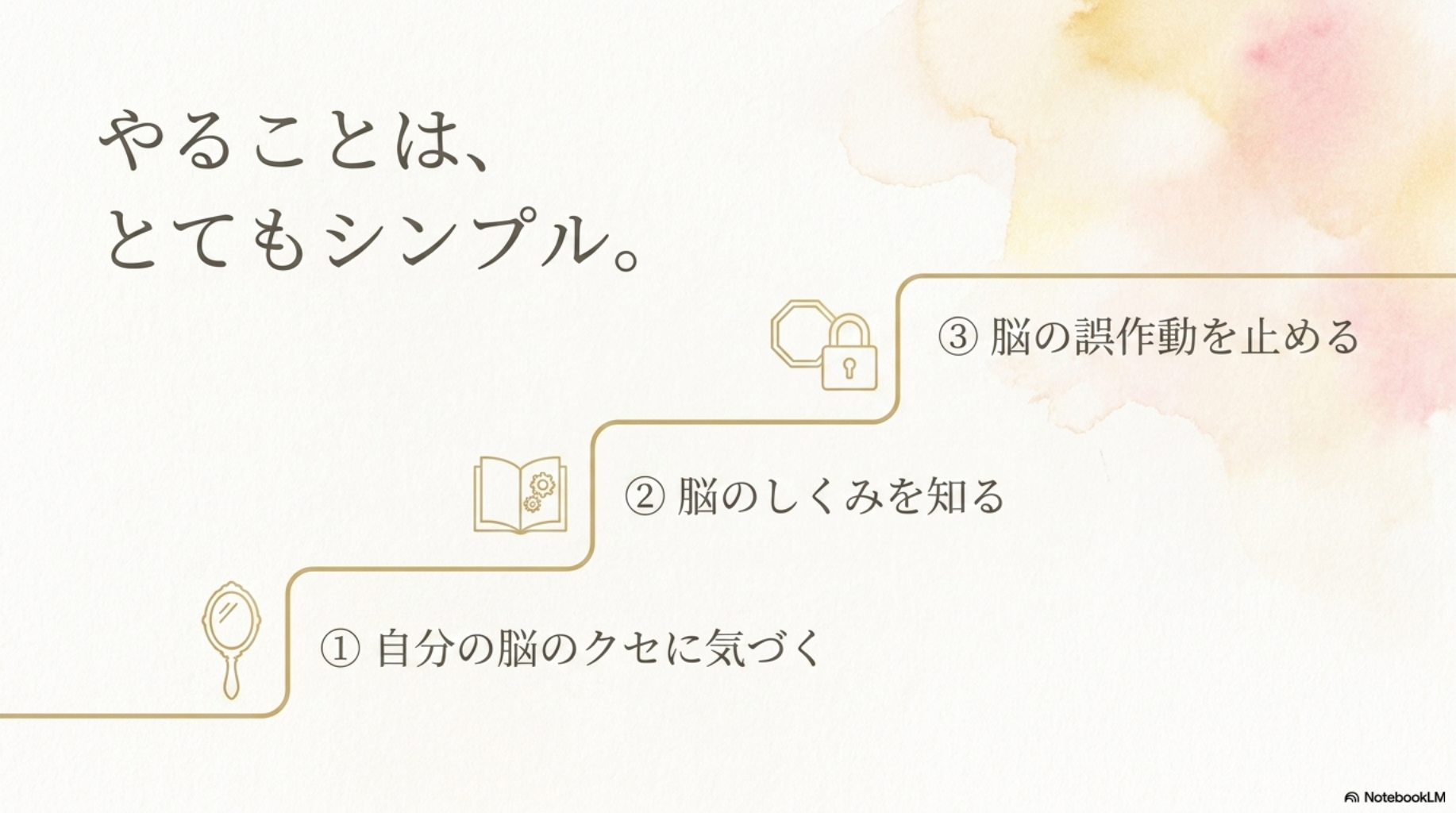 次に脳の仕組みを理解し、誤作動を止めることで行動が変わっていきます。